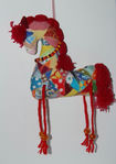 Лошадка Веселинка. Автор - Мария Матвиенко. Интересен способ крепления ножек - нитка на конце вязаного шнурка продета насквозь через туловище лошадки, и в месте крепления противоположной ноги завязан узелок. Узелков этих совсем не видно, получается очень аккуратно, и нет необходимости прикрывать тесьмой места пришива ножек. По-моему, отличная идея :)